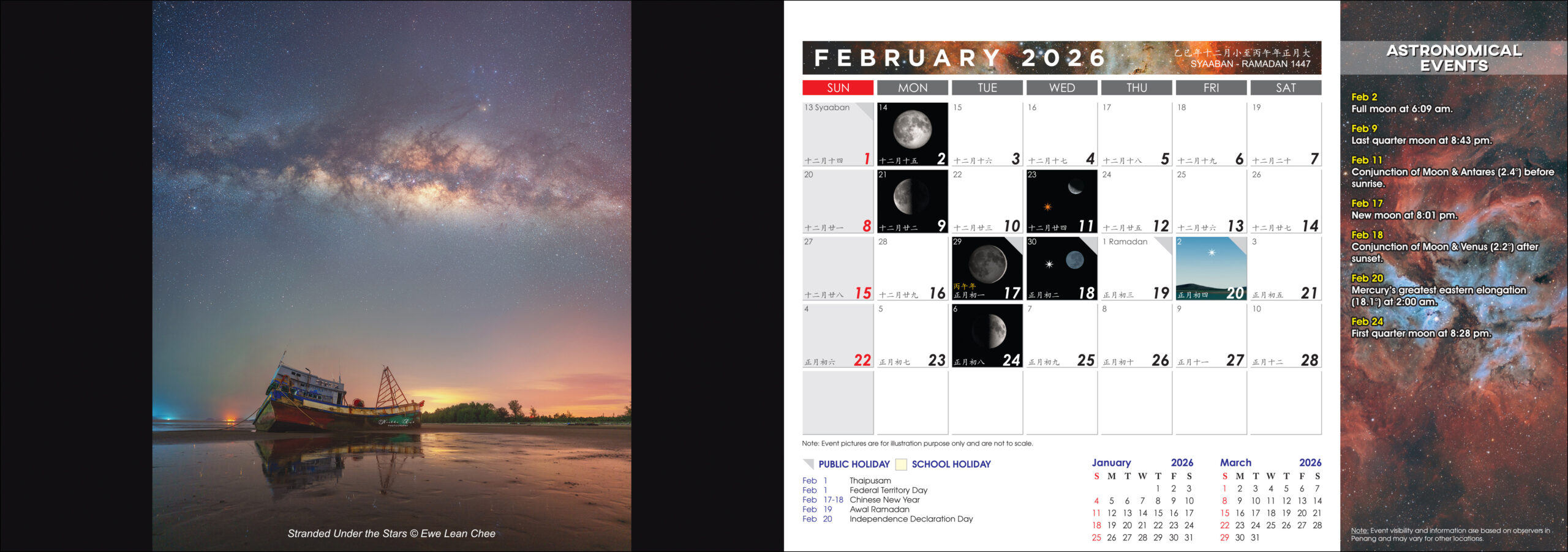 Winners of the Astrophotography Contest 2024 organized by the Astronomical Society of Penang. Thirteen best images were decided by a panel of three judges for the First Prize, Second Prize, Third Prize, and ten Consolation Prizes. All thirteen winning photos will be featured in the desk calendar of the year 2025 to be published by the Astronomical Society of