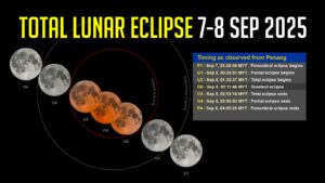 Come join the Astronomical Society of Penang’s observation activities and Live stream of the Total Lunar Eclipse this coming Sunday night to Monday morning (7-8 September 2025). This total lunar eclipse will be visible from Penang. For more information visit our event page: https://astronomicalsocietyofpenang.com/2025totallunareclipse/